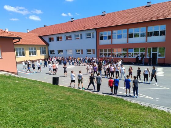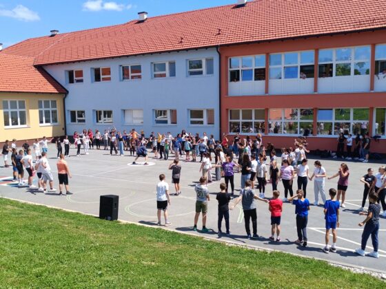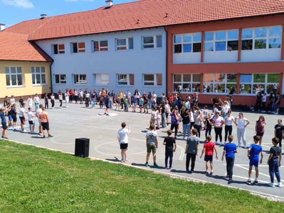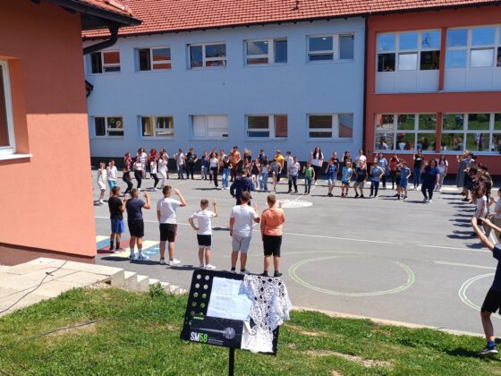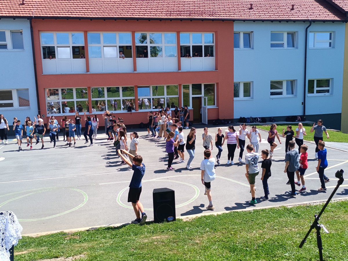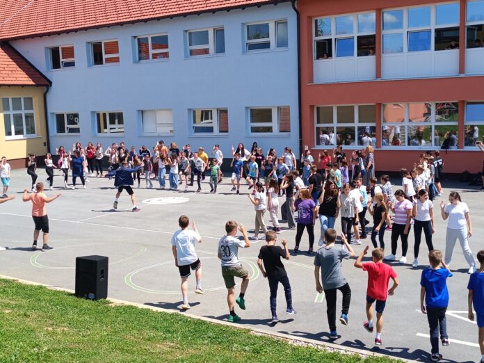 Na školskom igralištu okupilo se dvjestotinjak učenika petih i šestih razreda koji su na ovaj način slavili glazbu.