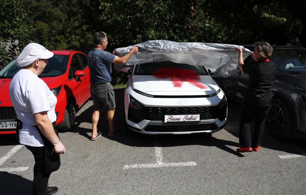Nakon svečanog trenutka i uručenja ključeva, Jasnu su poveli na parkiralište, gdje ju je čekalo iznenađenje – automobil. Emocije su, kažu svjedoci, bile snažne, a slavljenica nije skrivala suze radosnice.