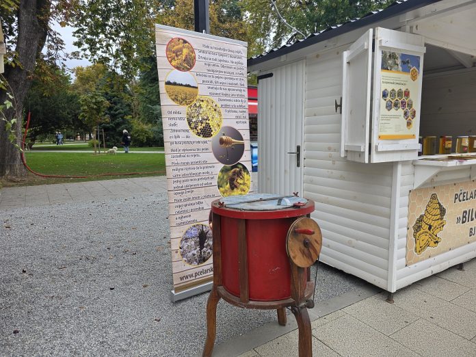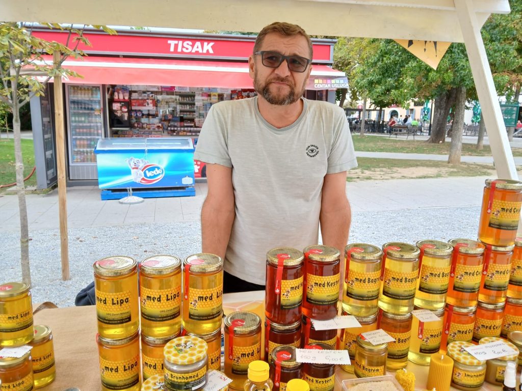 Zoran Milovac s OPG-a Milovac na svom štandu osim meda prodaje i propolis, vosak, pelud, ali i kremice koje pomažu, primjerice, kod opeklina zbog prirodnih antibiotskih svojstava propolisa. Na svom OPG-u ima oko 70 košnica.