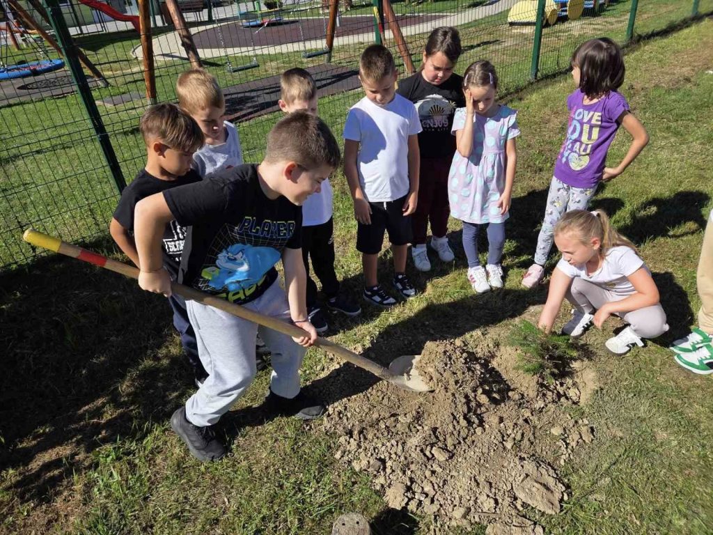Svaka nova generacija prvašića obilježava svoj početak školovanja upravo na taj način, a ovogodišnjih šesnaest učenika posadilo je stablo pod vodstvom svoje učiteljice Spomenke Pavšek. Tom prilikom pohranili su i pismo u “vremensku kapsulu”.