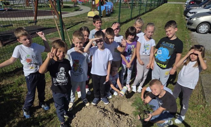 Svaka nova generacija prvašića obilježava svoj početak školovanja upravo na taj način, a ovogodišnjih šesnaest učenika posadilo je stablo pod vodstvom svoje učiteljice Spomenke Pavšek. Tom prilikom pohranili su i pismo u “vremensku kapsulu”.