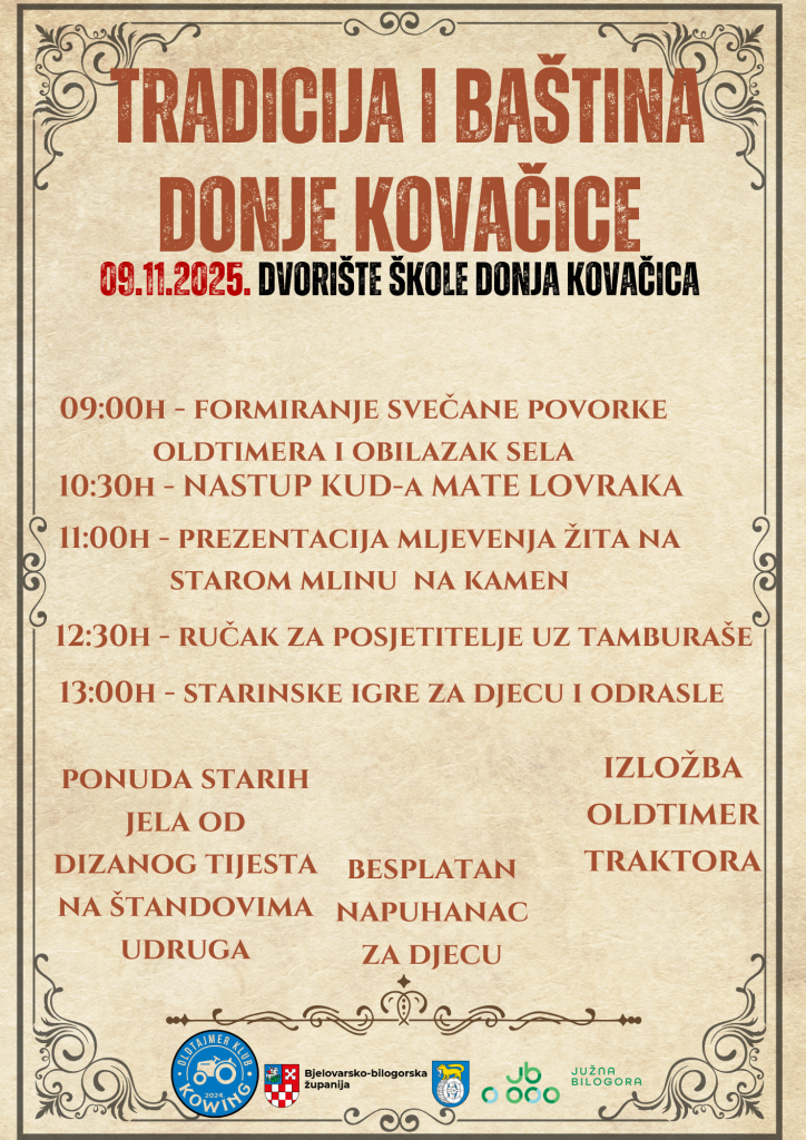 Događaj organizira Oldtimer klub Kowing uz potporu Bjelovarsko-bilogorske županije i Turističke zajednice Južna Bilogora, a posjetiteljima će ponuditi raznolik program i prikaz tradicijskih vrijednosti na autentičan način.