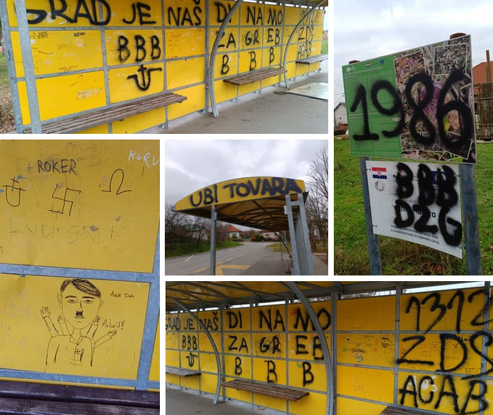 U noći sa subote na nedjelju autobusne kućice uz Osnovnu školu Čazma ponovno su osvanule devastirane. Nacrtano je ustaško znakovlje, Hitlerov lik, parole mržnje i oznake poput “ZDS”, a oštećeni su i stupovi javne rasvjete te dijelovi školske imovine. No vidljiva šteta samo je površina problema koji se ondje ponavlja godinama.