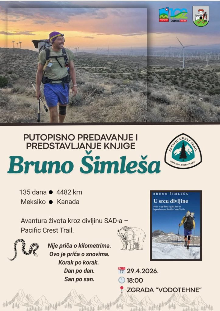 HPD Bilogora Bjelovar u suradnji s Gradom Bjelovarom organizira putopisno predavanje i predstavljanje knjige „U srcu divljine“ Brune Šimleše u srijedu, 29. travnja 2026. u 18 sati u digitalno-inovacijskom hubu, odnosno zgradi bivše Vodotehne. Ulaz je besplatan i najava nije potrebna.